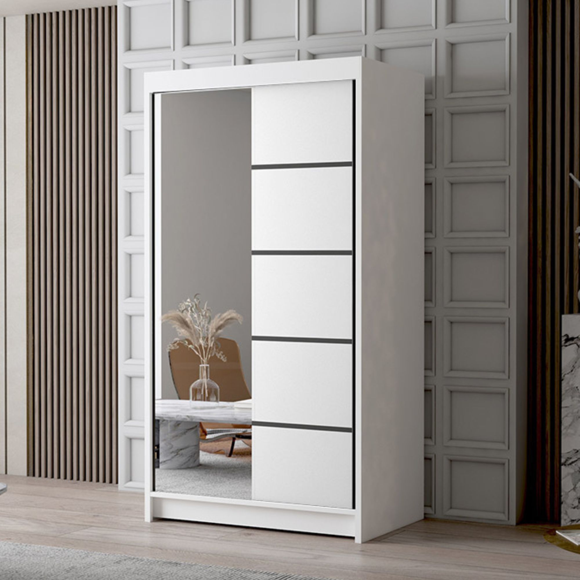 Szafa przesuwna LIWIO III 100 cm z lustrem biała