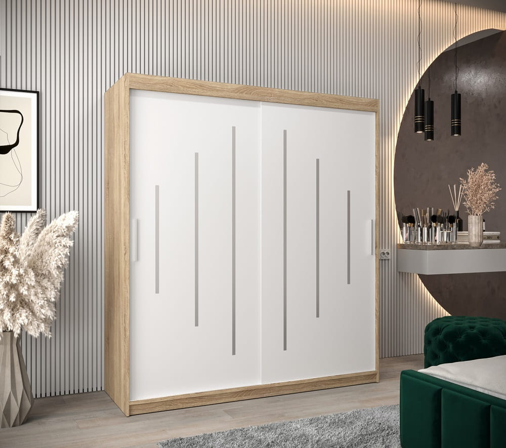 Kolekcja szaf przesuwnych JORK, dzięki szerokim możliwościom kolorystycznym, doskonale dopełni wnętrza zarówno w stylu skandynawskim, jak i bardziej nowoczesne, a nawet industrialne pomieszczenia. Ozdobne pasy w kolorze srebrnym tworzą unikalny ogólny charakter, który zagości w Twoim domu na dłużej.