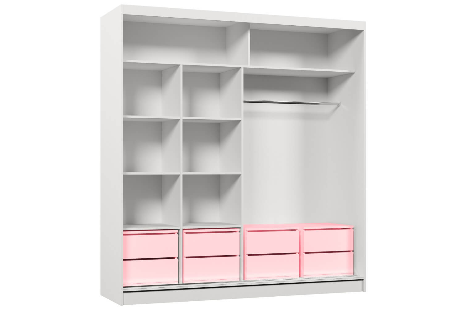 Dodatkowo istnieje możliwość dokupienia kontenerka, który zapewni Państwu perfekcyjny porządek we wnętrzu szafy. Kontenerek zaprojektowany został pod wymiary półeczek w szafie, dając w ten sposób możliwość swobodnego dostępu do naszych rzeczy.Istnieje możliwość dokupienia oświetlenia led, dodatkowych półek oraz drążków oraz cichego domyku.W przypadku wyboru dodatkowych szuflad, zmienia się układ wewnętrzny szafy!