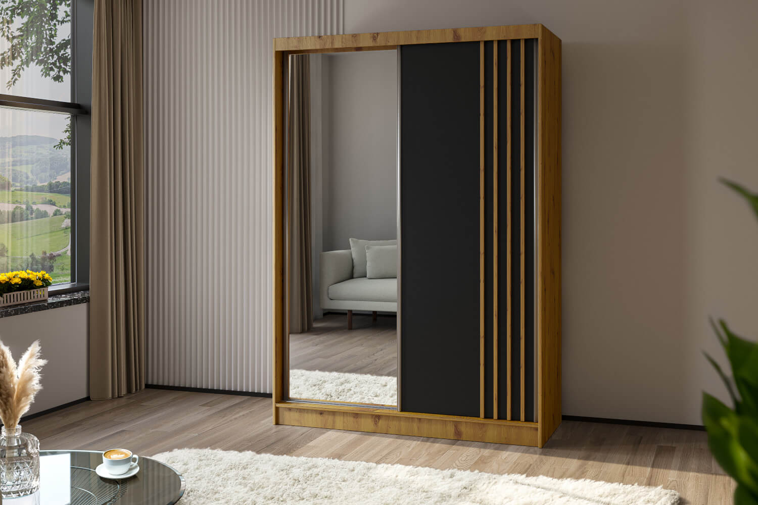 Korpus: Czarny Mat / Front: Dąb Artisan / Lamele : Czarny Mat