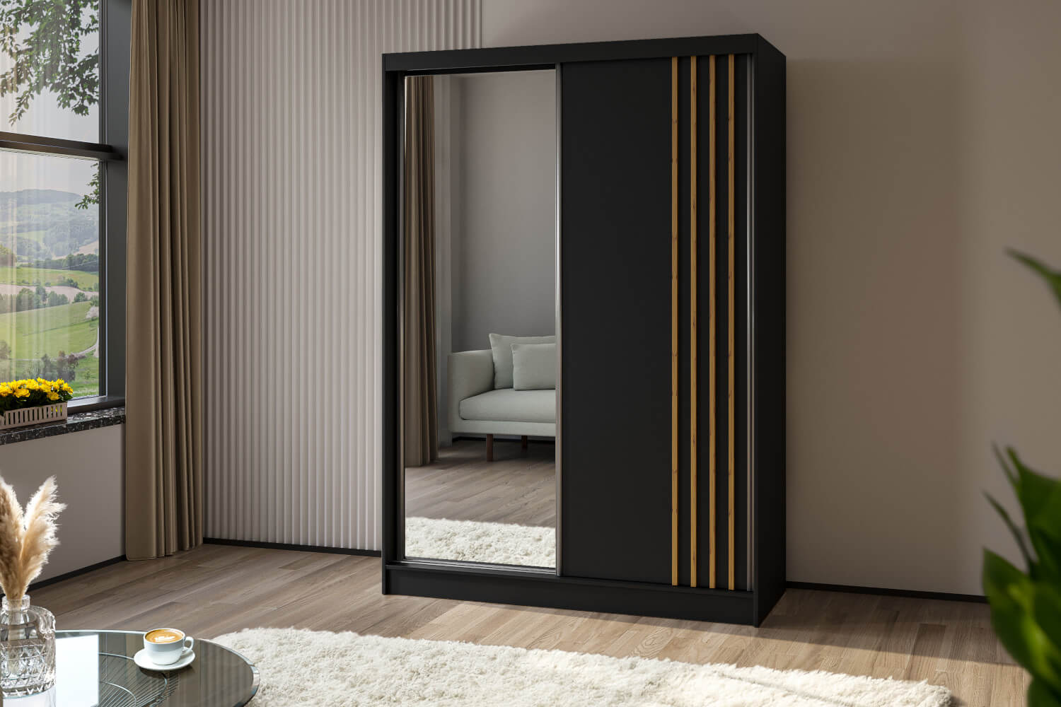 NILA to elegancka szafa o minimalistycznym designie, która z pewnością stanie się nie tylko praktycznym elementem Twojej sypialni, ale także jej stylową dekoracją. Jej front zdobią lustrzane drzwi, które dodają przestrzeni i światła pomieszczeniu. Ozdobne lamelki, nadające całości nowoczesnego wyglądu.