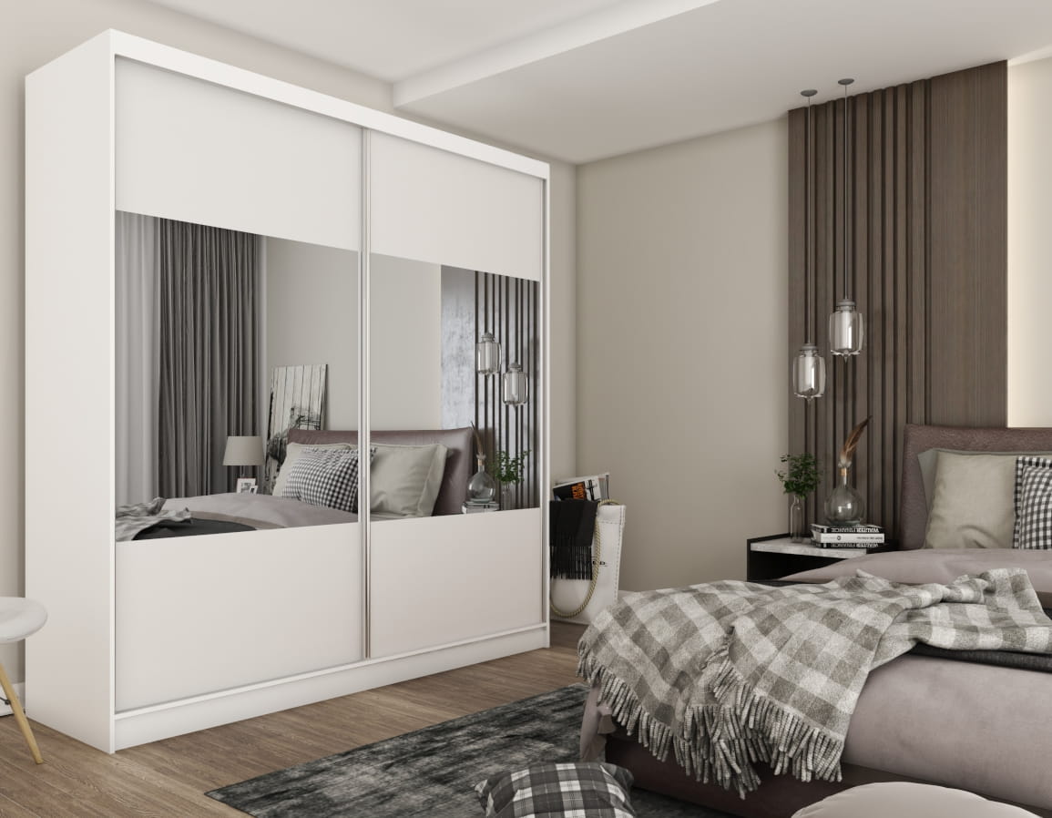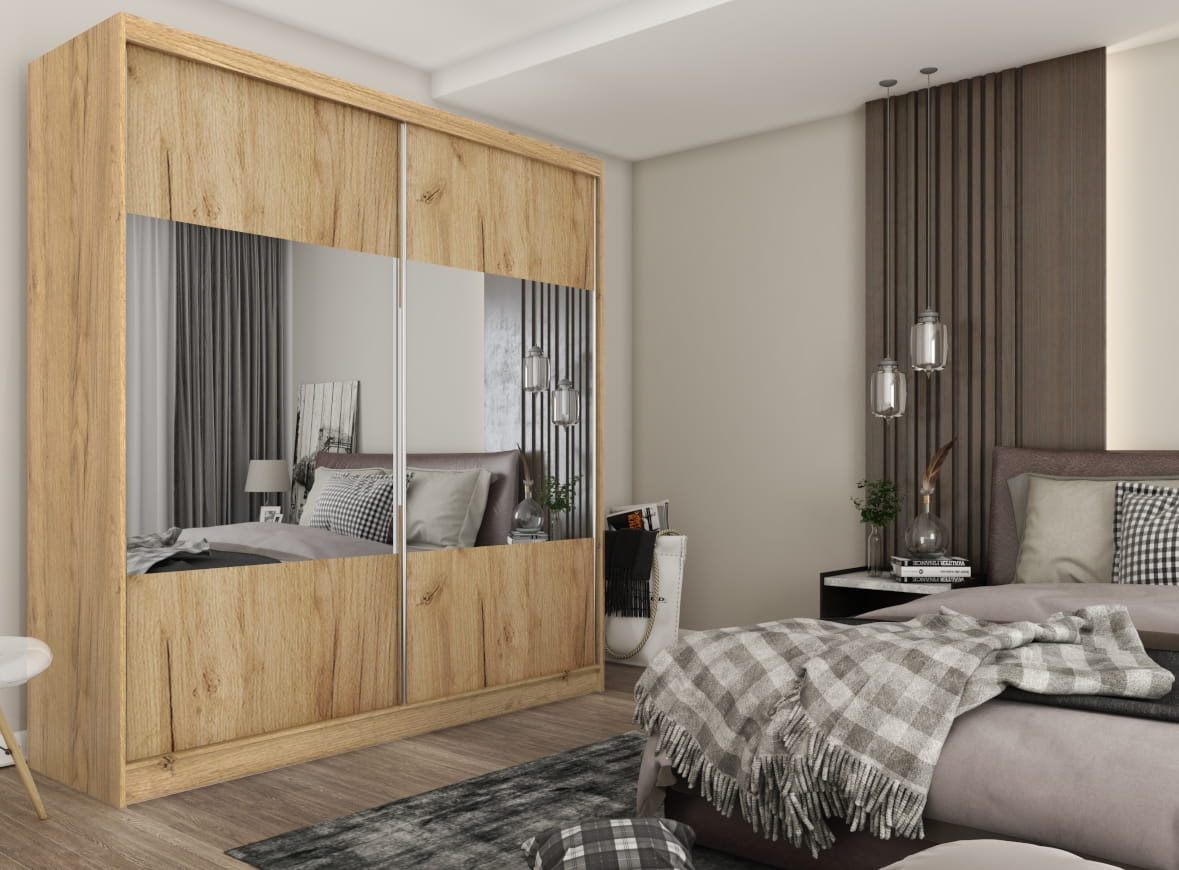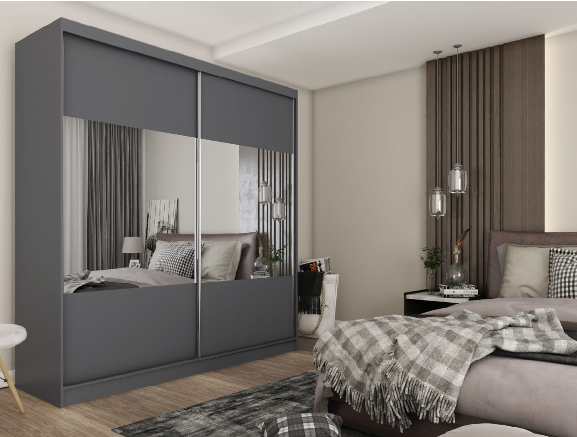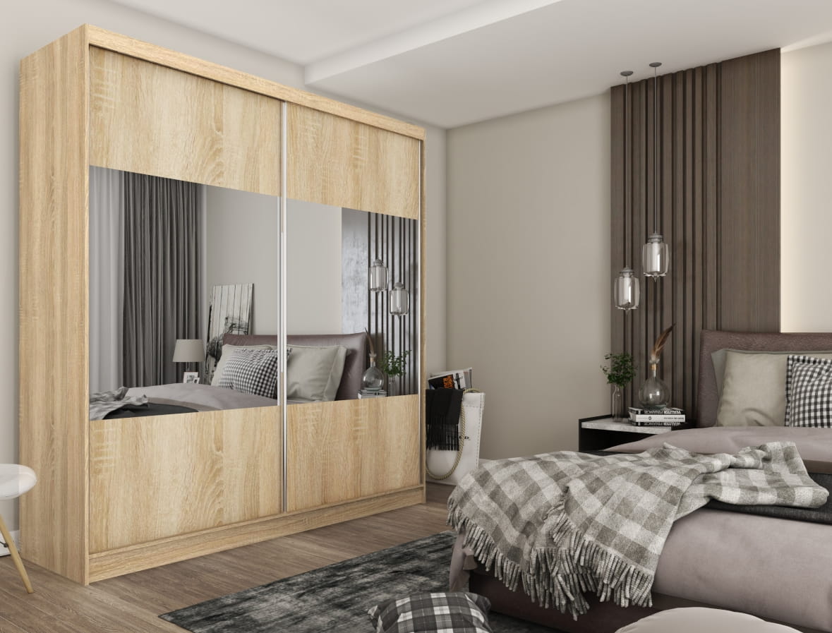 Poszukujesz funkcjonalnych, a zarazem atrakcyjnych dla oka rozwiązań do Twojego domu ? Szafa CELIA dostępna jest tylko w jednym rozmiarze, stanowiąc świetną alternatywę dla posiadacza dużej garderoby. Znakiem rozpoznawczym tego modelu jest poziome lustro zdobiące front przesuwnych drzwi. Za nimi znajduje się rozbudowany system półek, które wraz z drążkiem pozwolą na łatwą segregację oraz składanie ubrań.
