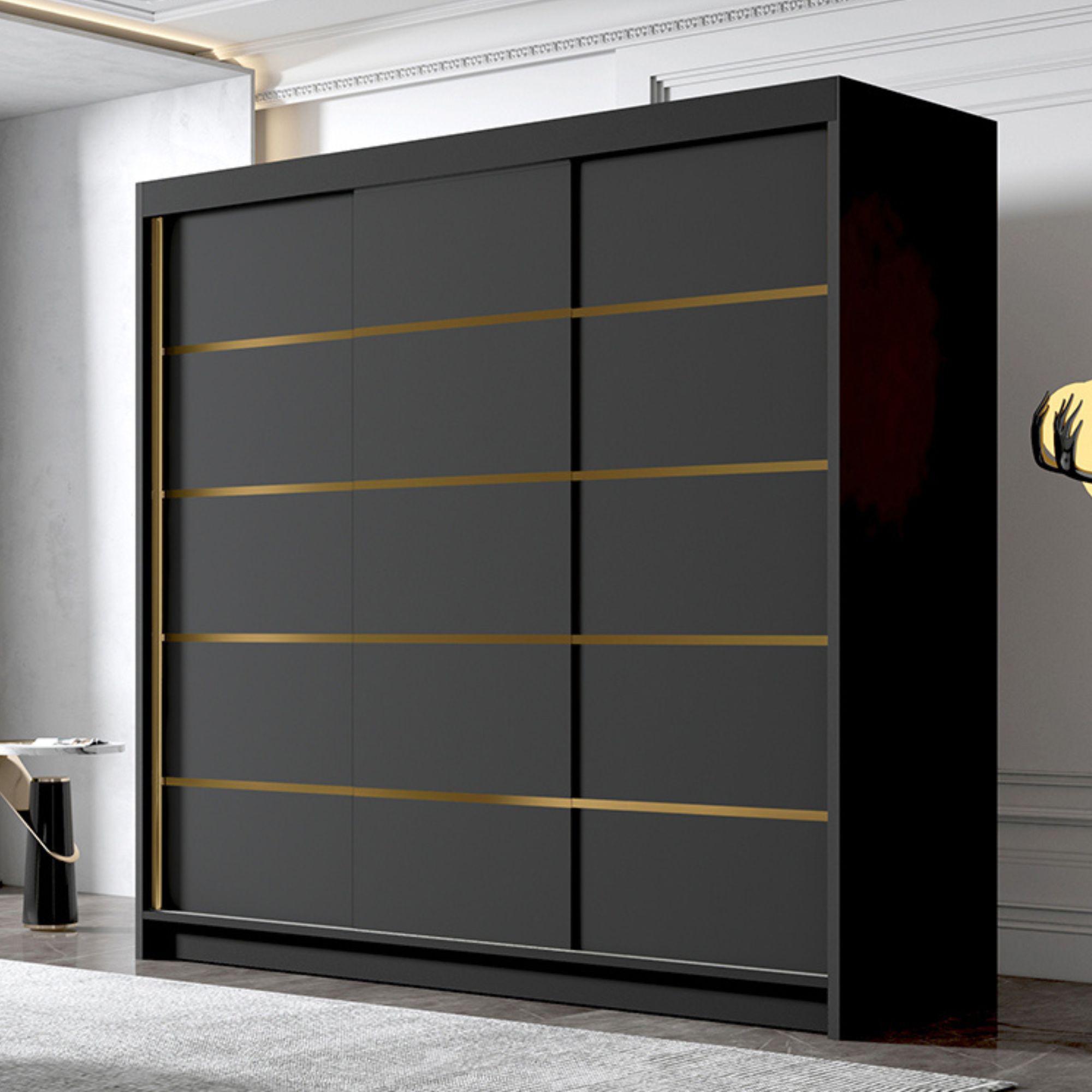 Szafa z lustrem DAVO to wyważone połączenie nowoczesnej formy i detalu, stworzone z myślą o stylowych, funkcjonalnych wnętrzach. Głęboka, matowa czerń, w połączeniu ze złotymi szprosami, tworzy wyrazisty kontrast, który przyciąga wzrok i nadaje wnętrzu charakteru. Taki front nie tylko prezentuje się elegancko, ale też jest praktyczny – nie odbija światła i maskuje drobne ślady użytkowania.