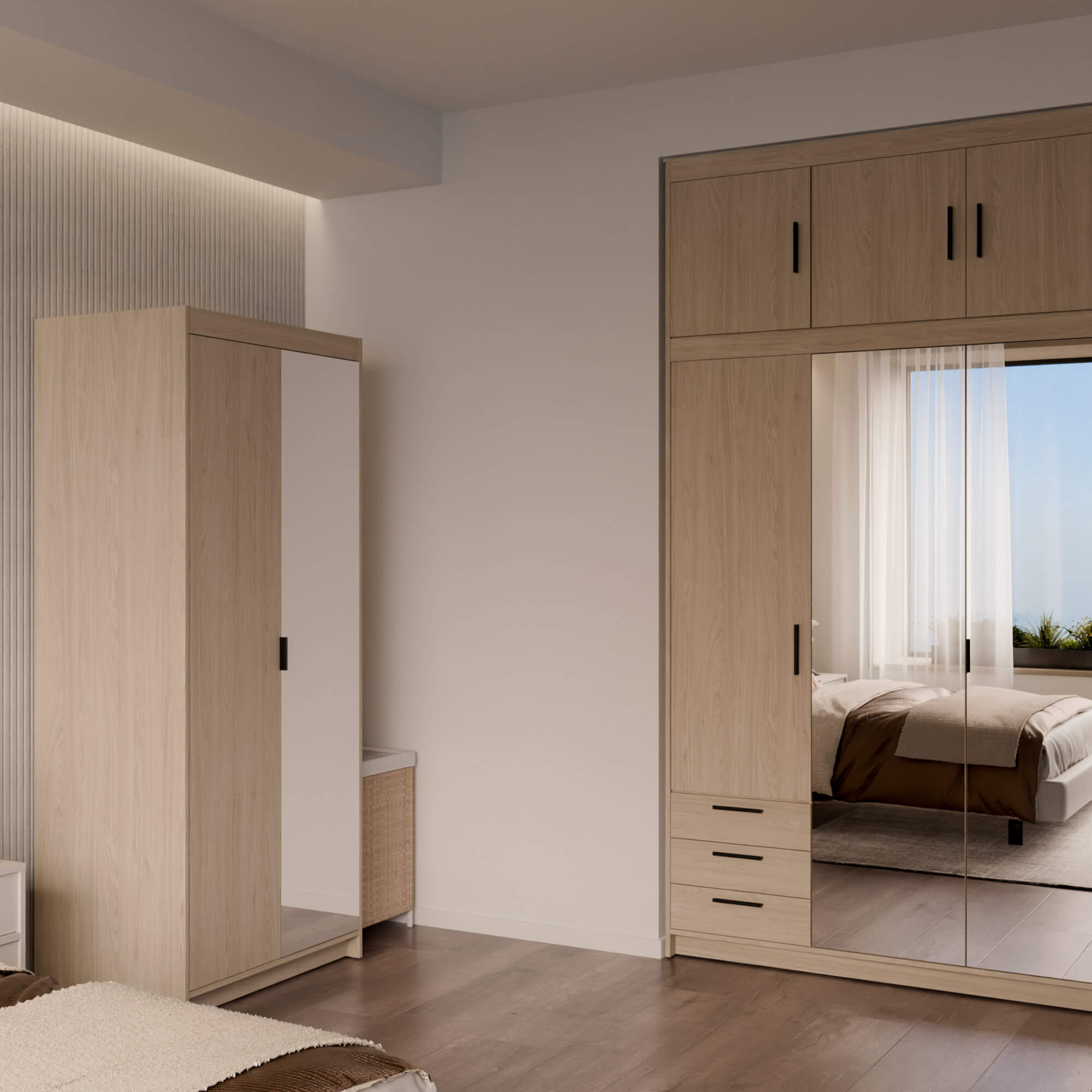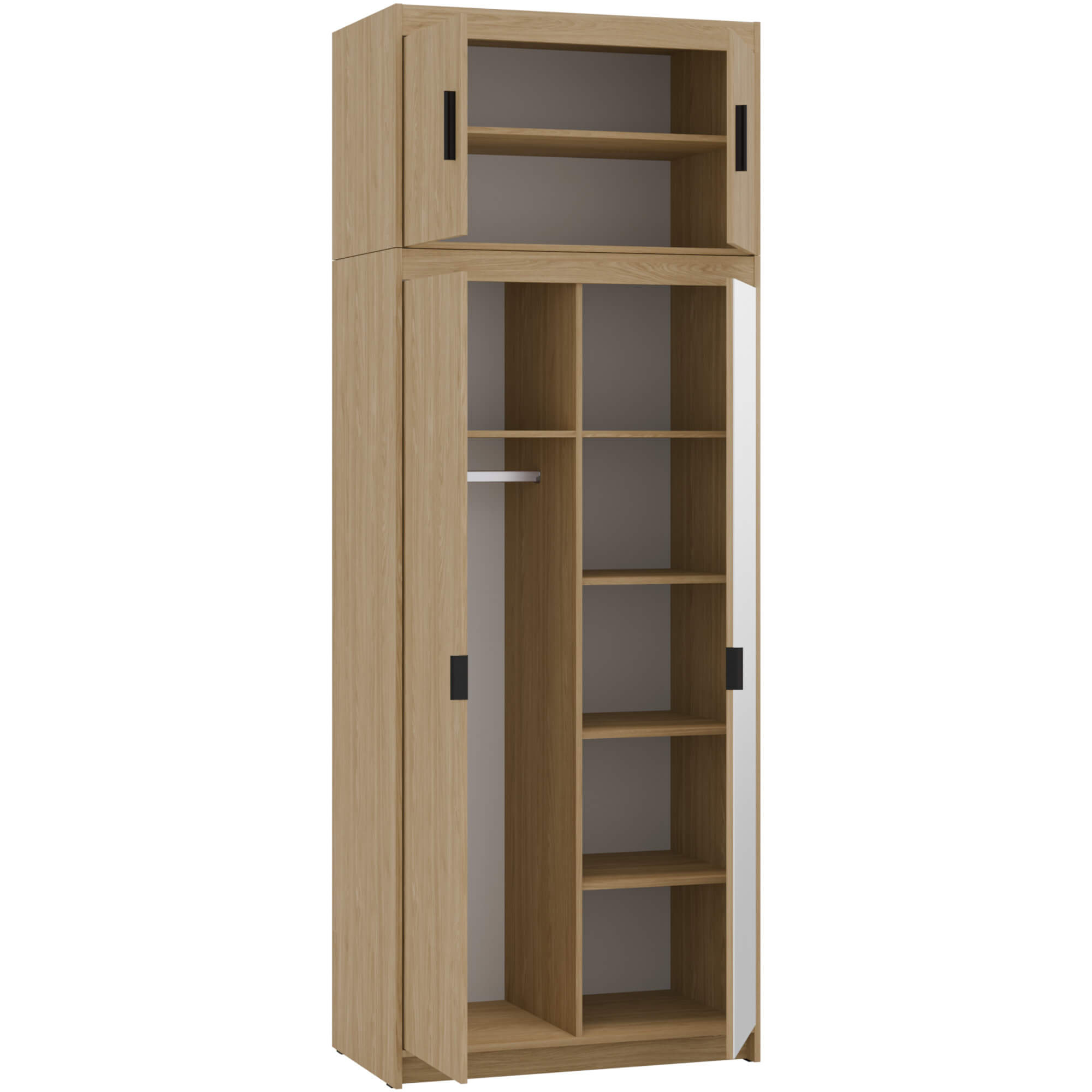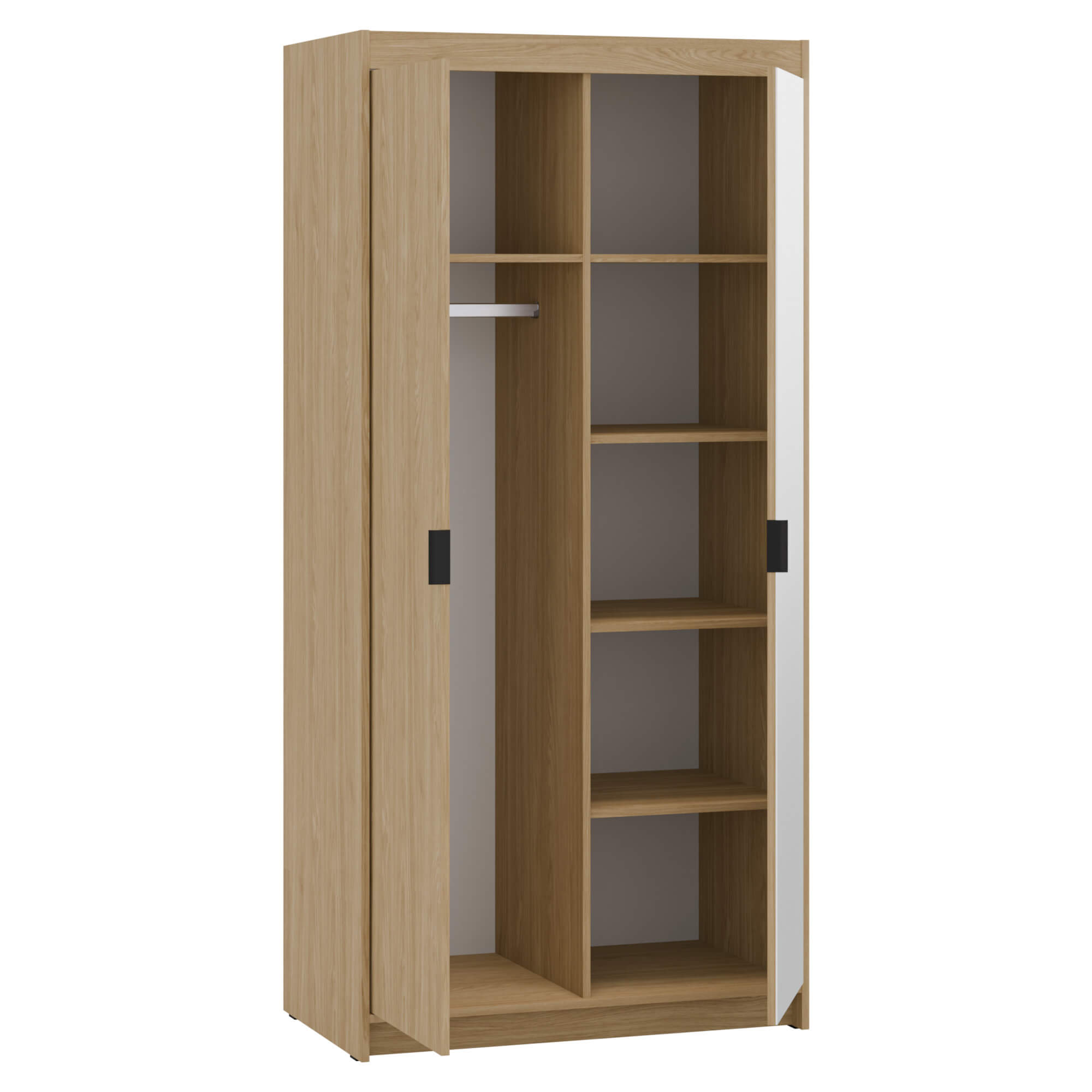 Funkcjonalna i elegancka szafa dwudrzwiowa LENA 2D to doskonałe rozwiązanie do różnych wnętrz. Wykonana w naturalnym kolorze dąb olejowany, idealnie wpisuje się zarówno w nowoczesne, jak i klasyczne wnętrza. Jedno z drzwi jest wyposażone w praktyczne lustro, optycznie powiększa przestrzeń, podnosząc komfort użytkowania. Wnętrze wyposażono w drążek na ubrania wierzchnie oraz funkcjonalne półki na odzież. Dodatkowym atutem jest możliwość dokupienia nadstawki, która pozwala zwiększyć pojemność szafy i maksymalnie wykorzystać dostępną przestrzeń.