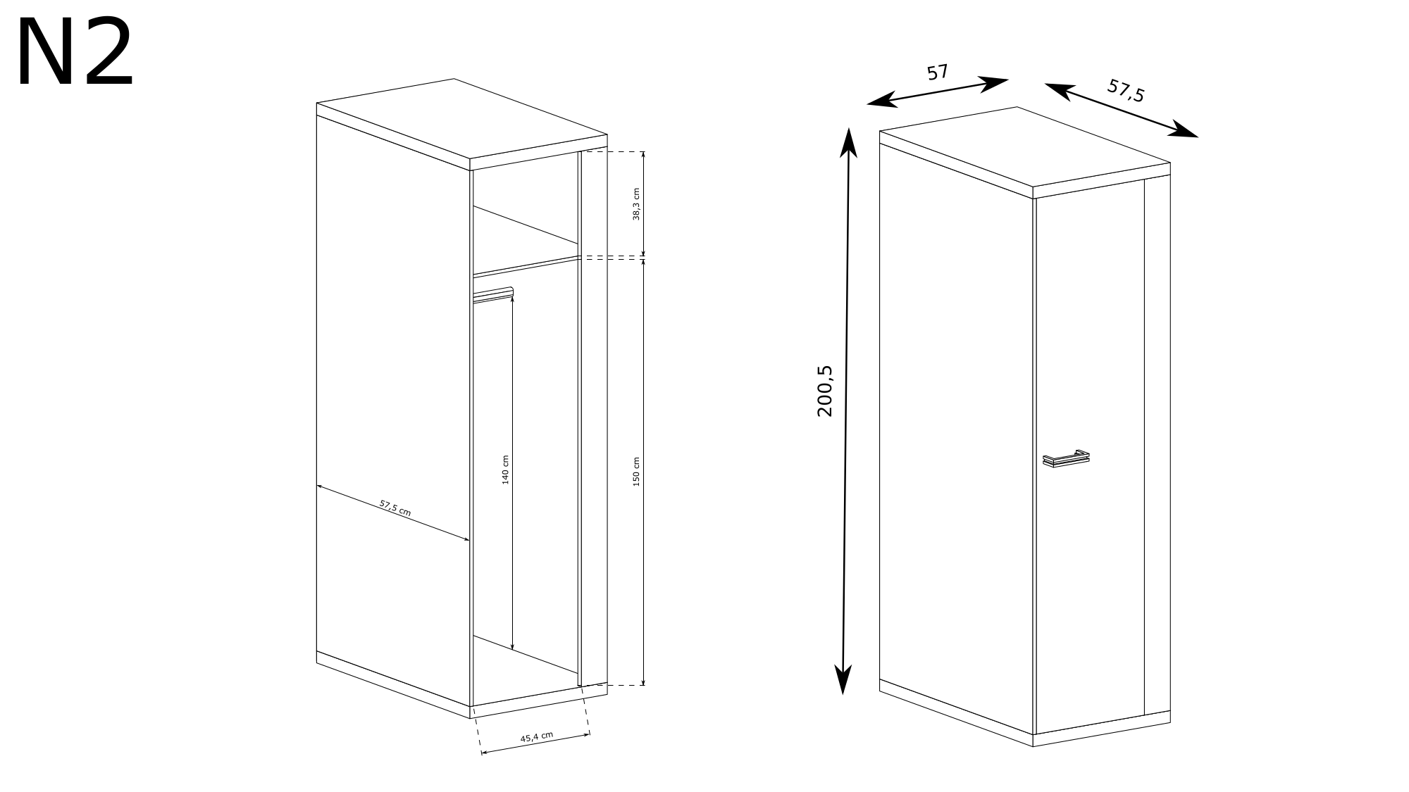 Szafa wąska z drążkiem 57 cm NATURAL N 2