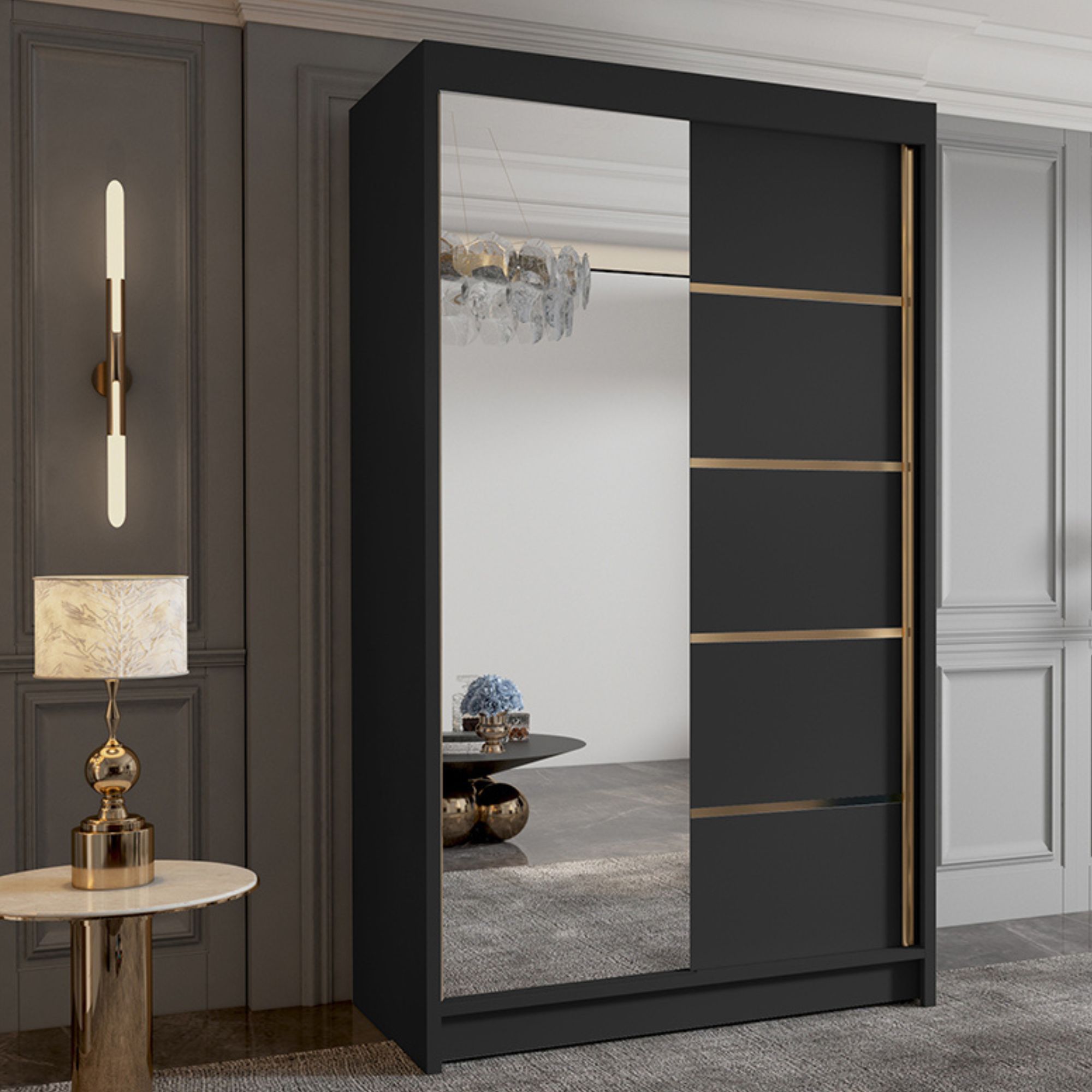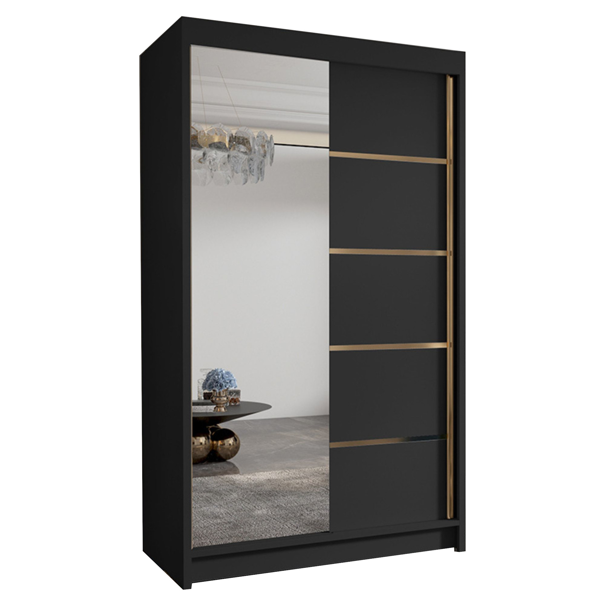 Szafa przesuwna 100 cm z lustrem WIGO III czarny mat