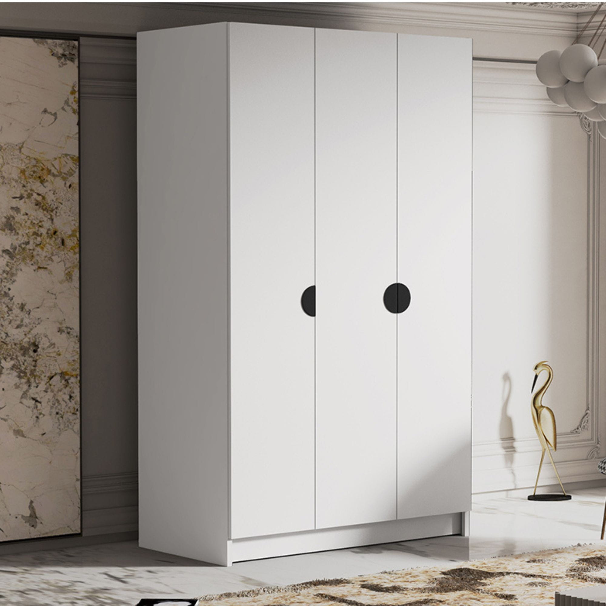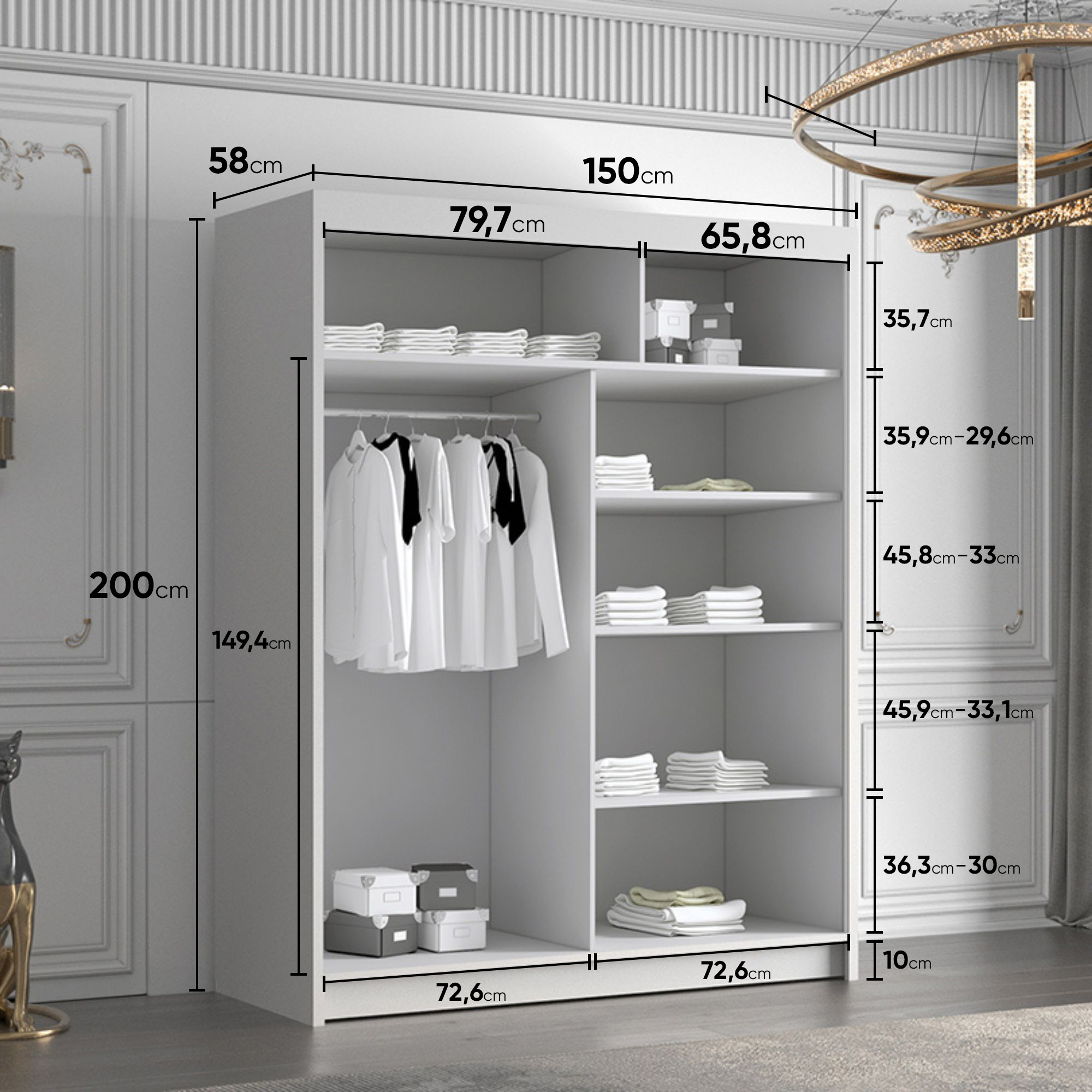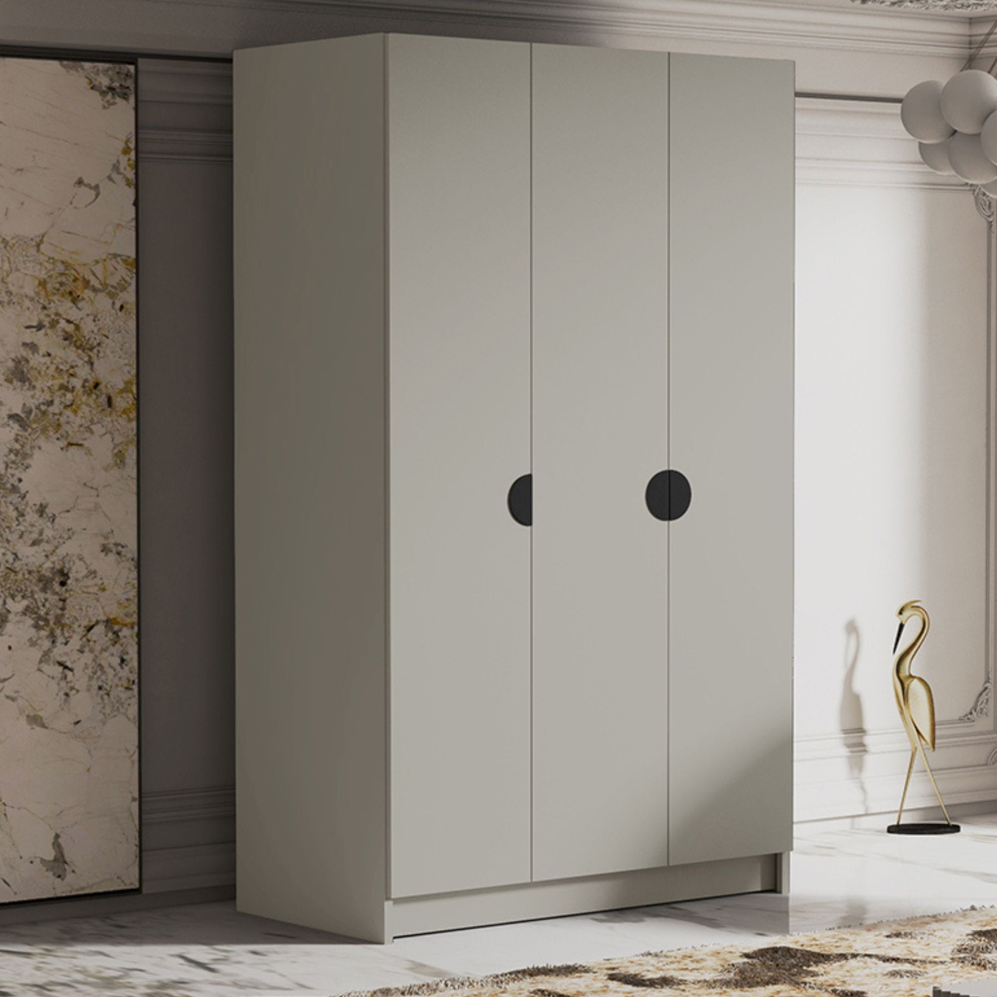 Szafa KAMON o szerokości 150 cm to nowoczesne i stylowe rozwiązanie do każdej sypialni, garderoby czy przedpokoju. Jej minimalistyczna forma doskonale wpisuje się w aktualne trendy wnętrzarskie, a geometryczne uchwyty w formie okręgów dodają jej oryginalnego charakteru.