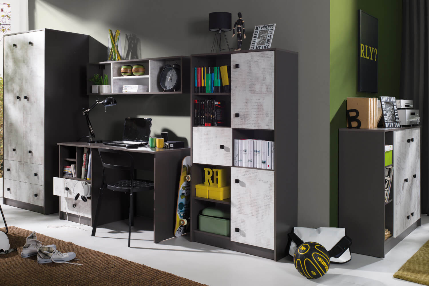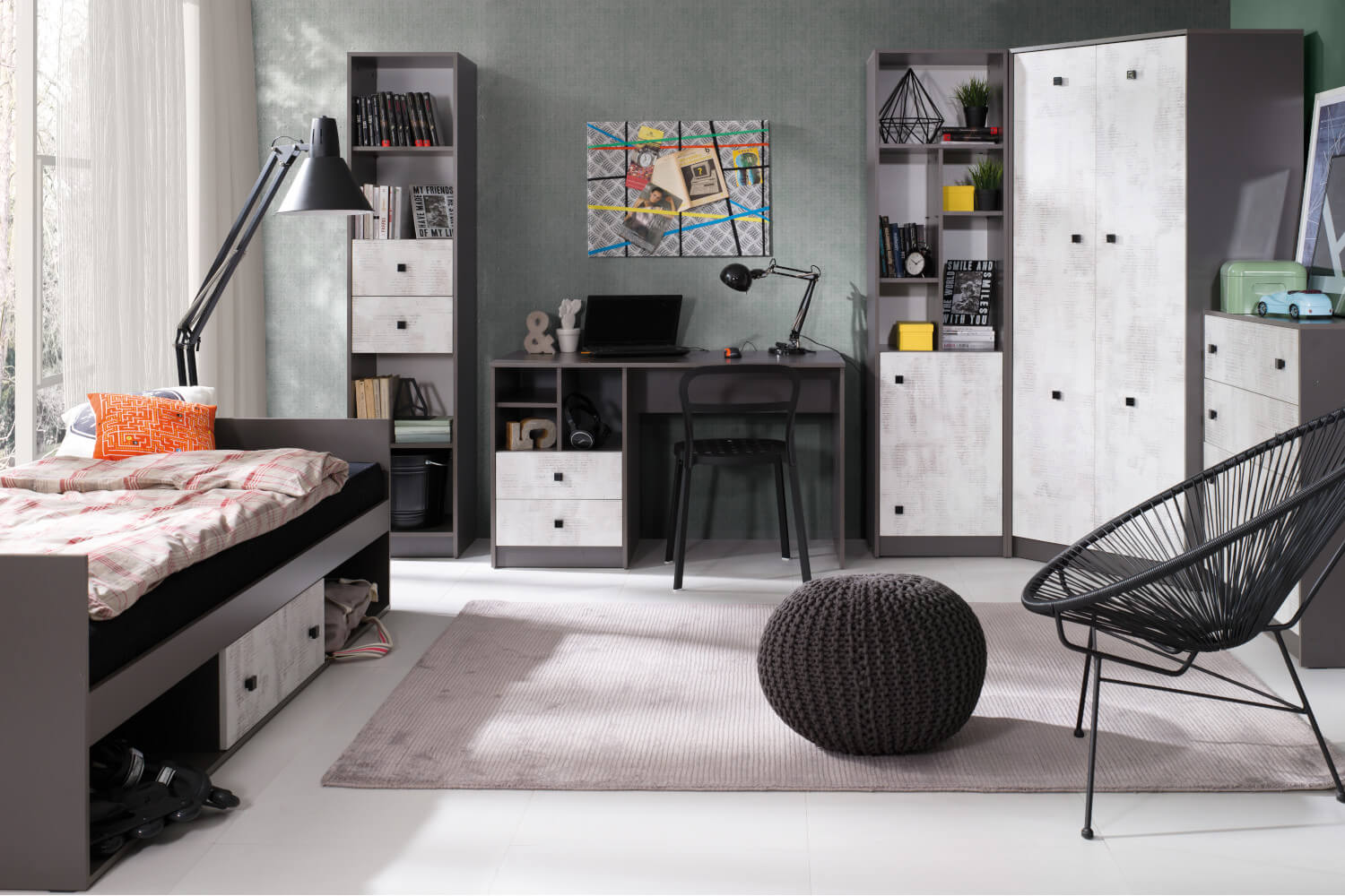 Meble systemowe TEDDY zostały zaprojektowane na potrzebę wykończenia wnętrza pokoju młodzieżowego. Wysokiej jakości materiały z jakich zostały wykonane meble pozwolą stworzyć pomieszczenie, które będzie idealnym miejscem na odrabianie lekcji oraz spędzanie wolnego czasu. Charakterystyczne kwadratowe uchwyty są idealnym dopełnieniem nowoczesnego designu. Praktyczne walory mebli sprawiają, że ich użytkowanie jest łatwe i przyjemne.