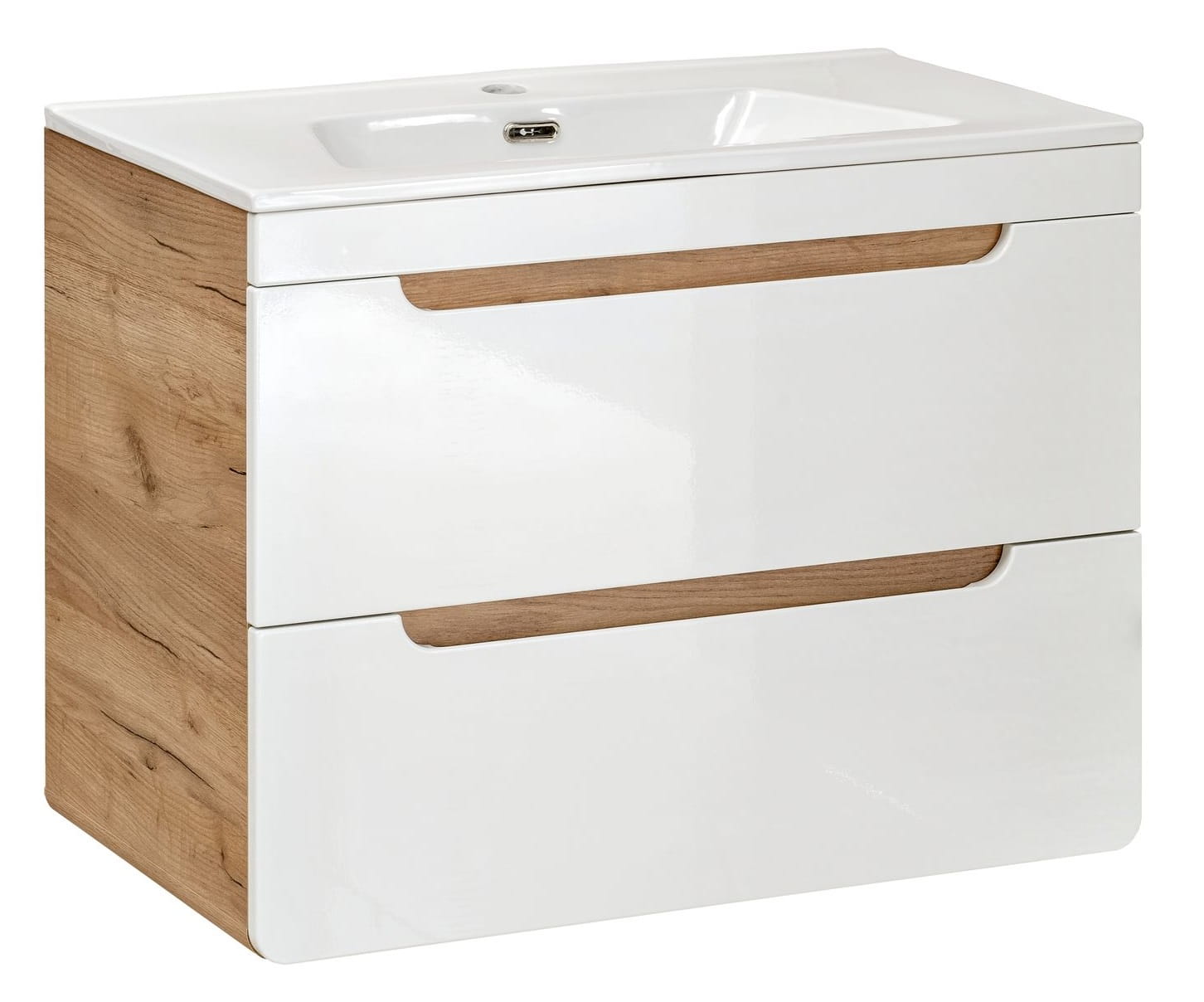 Szafka ARUBA 820 wyposażona w dwie pojemne szuflady idealnie sprawdzi się w każdym salonie kąpielowym. Dedykowana umywalka blatowa nałożona na mebel pozwala wygospodarować miejsce na odłożenie przyborów higienicznych oraz ułatwia czyszczenie powierzchni.