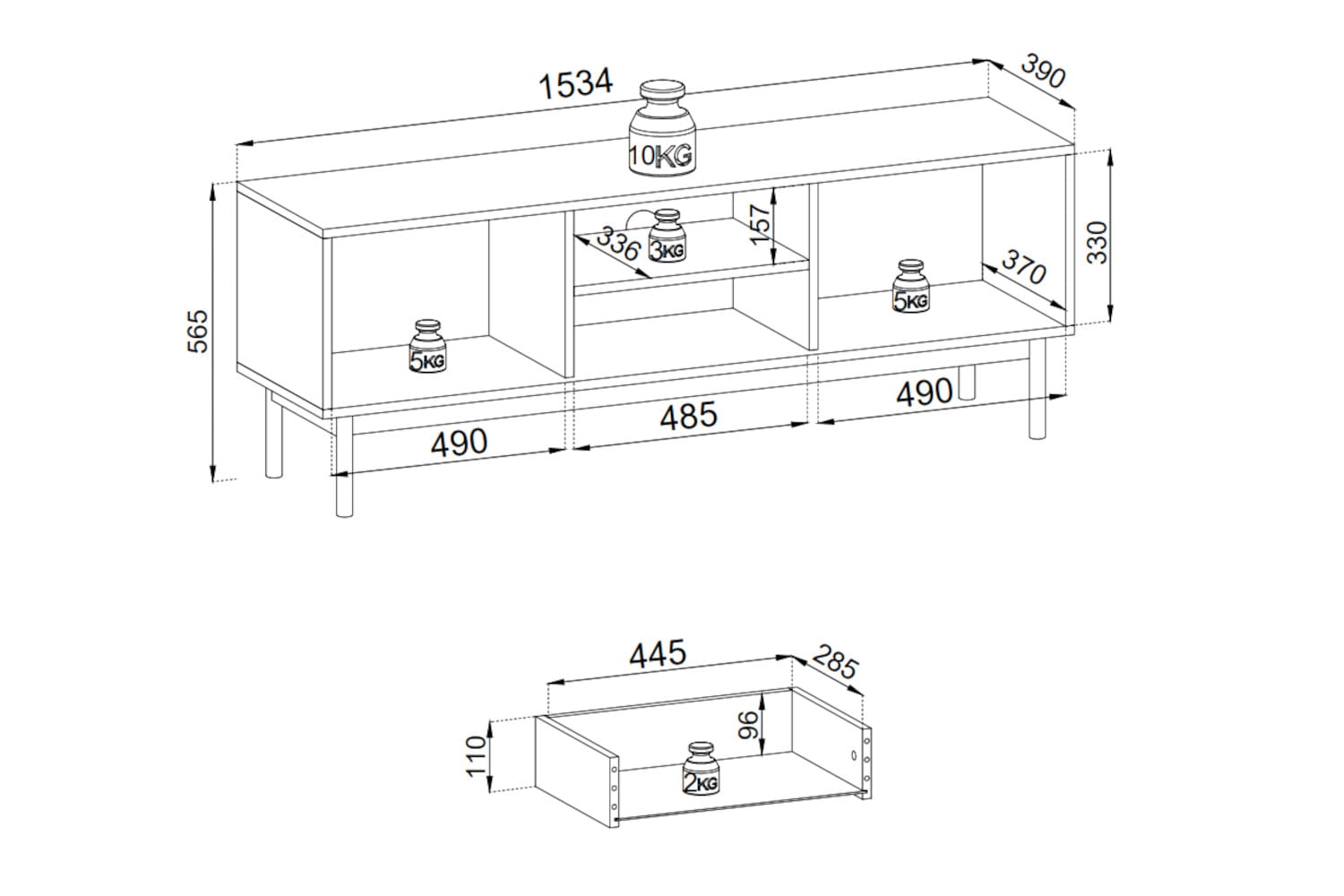 Szafka RTV Japandi na drwwnianych nogach 154 cm Dąb Linea