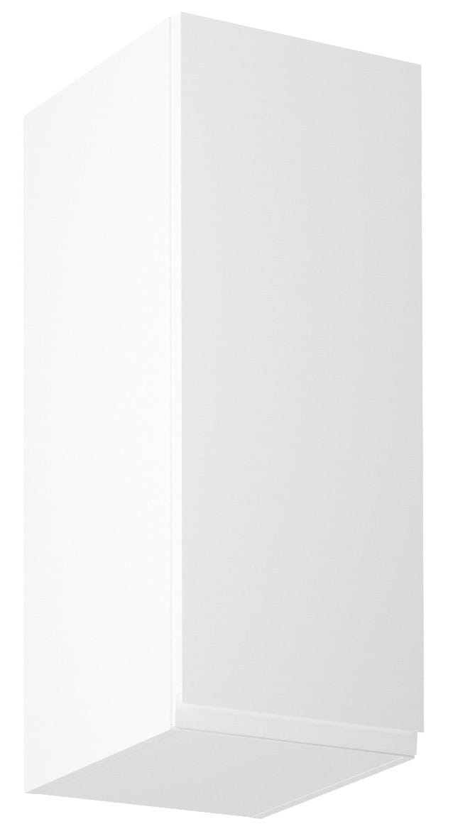 Wąska szafka uchylna składa się z jednych drzwi, za którymi skrywają się praktyczne półki, zapewniające należytą segregację akcesoriom kuchennym.