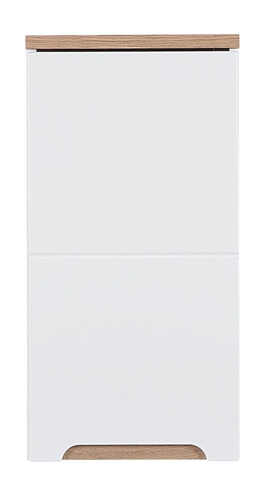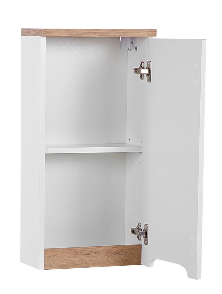 Szafka wisząca 35 cm BALI WHITE posiada półkę dzielącą wnętrze na dwie przestrzenie. Zmieścimy wewnątrz kosmetyki, perfumy czy artykuły higieniczne.