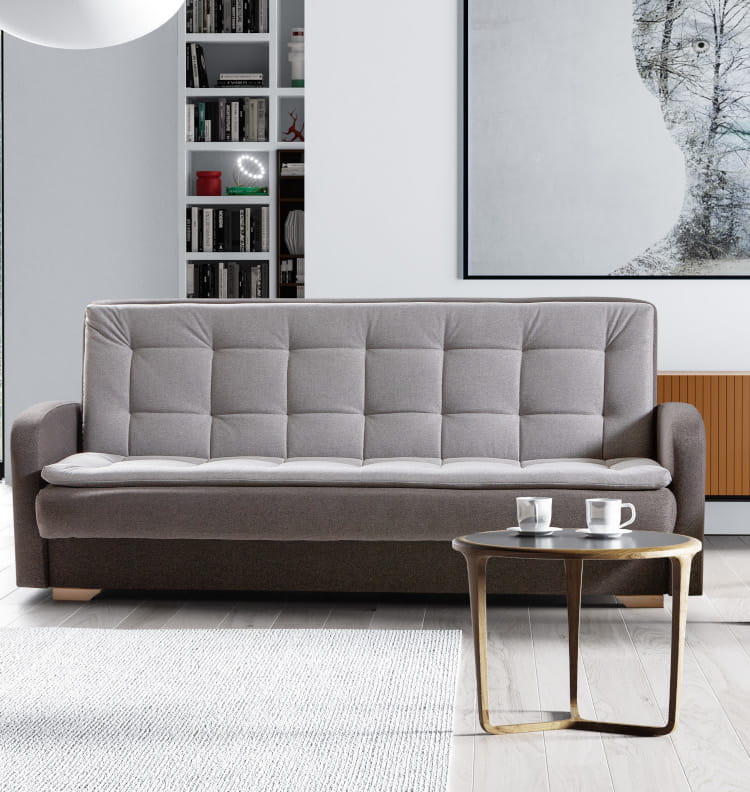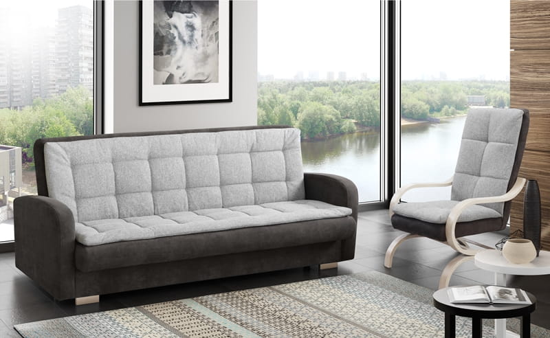 Wersalka z funkcją spania BINGO BIS idealnie wypełni wnętrze każdego salonu lub pokoju dziennego. Tapicerowane oparcie oraz siedzisko nadaje charakterystycznego wyglądu wyróżniającego mebel na tle pozostałych. Boki kanapy zostały zaokrąglone dzięki czemu zaaranżowane pomieszczenie będzie posiadać doskonały design. Kanapa została wyposażona w wytrzymałe sprężyny bonnelowe, co zachwyci ponadprzeciętną wygodą wypoczynku w Państwa mieszkaniu.
