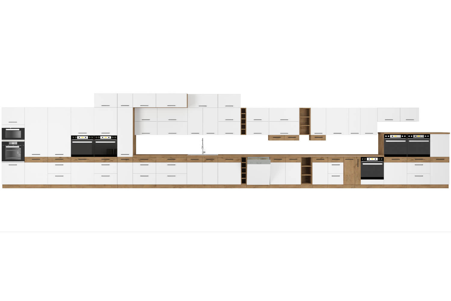 Unikalna stylistyka mebli kuchennych z kolekcji VIRGO odmieni Twoje wnętrze, wprowadzając do niego niekonwencjonalność z nutą elegancji. Fronty geometrycznych szafek są wykonane w kolorze białym z powłoką, nadającą piękny połysk. Otworzysz je za pomocą czarnych uchwytów z metalu. Korpusy poszczególnych brył zostały skonstruowane z trwałej płyty laminowanej, wybarwionej na ciepły odcień dębu lancelot. Oryginalna kuchnia VIRGO wykreuje doskonałą przestrzeń do przygotowywania oraz spożywania posiłków wraz z rodziną!