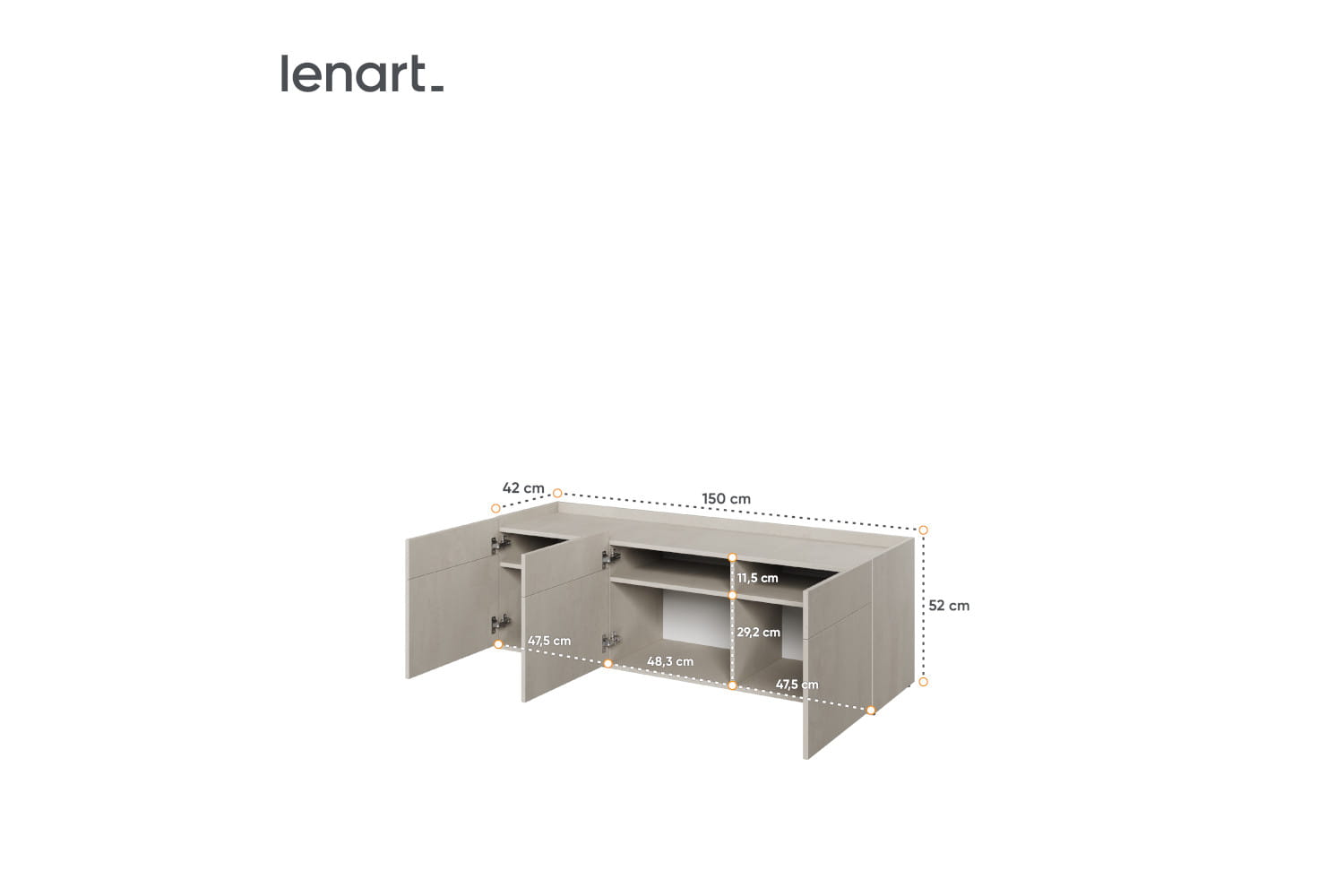 - Szafka TF-08: szerokość: 150 cm / wysokość: 52 cm / głębokość: 42 cm / waga: 39 kg