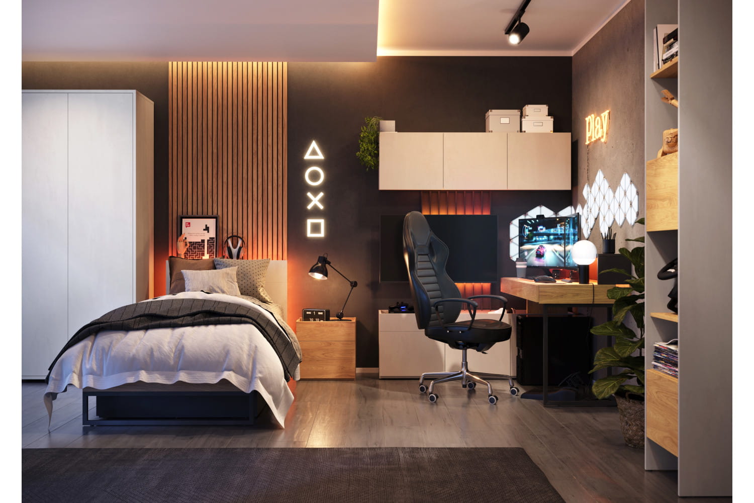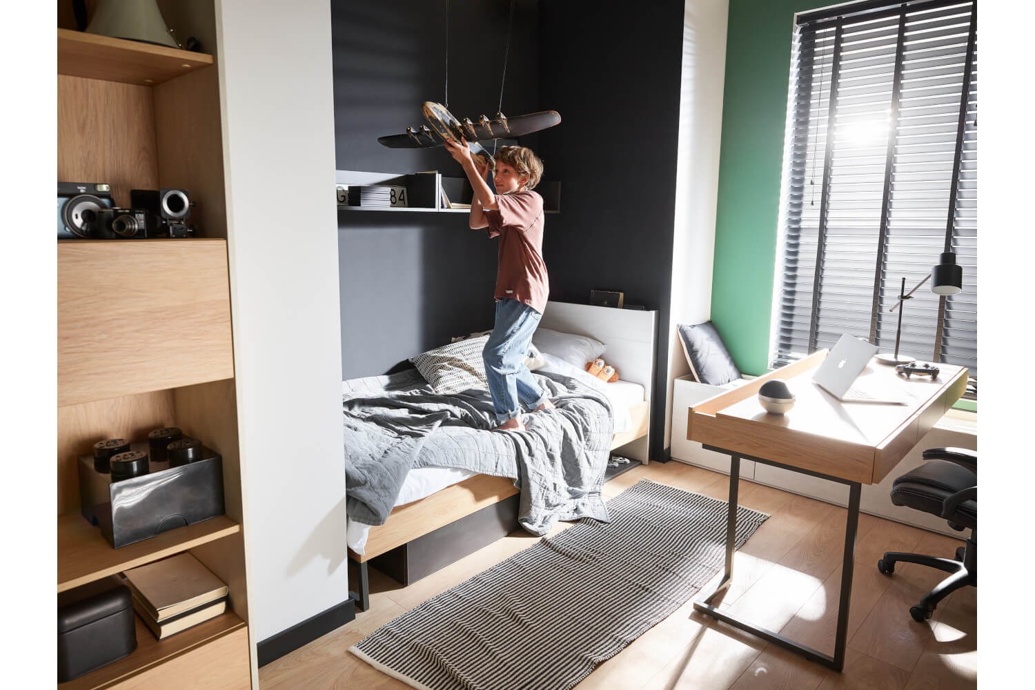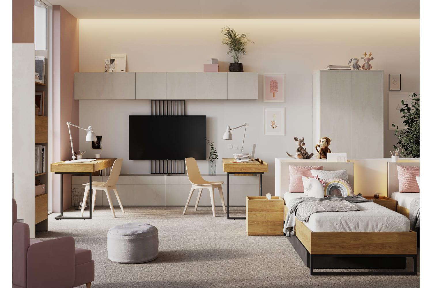 Kolekcję mebli młodzieżowych TEEN FLEX zadedykowano młodym użytkownikom ceniącym funkcjonalne rozwiązania w nowoczesnej formie. Designerskie wzornictwo połączone ze stonowaną kolorystyką sprawią, że meble te sprawdzą się w pokoju chłopaka, jak i dziewczyny. Dla osób cieszących się luksusem posiadania pokoju na własność projektanci stworzyli, kilka zaskakujących zestawów. Tym, co wyróżnia prezentowany system na tle pozostałych kolekcji, to troska o dzieci dzielące wspólnie przestań. Jeżeli poszukujesz rozwiązań dla rodzeństwa, TEEN FLEX jest strzałem w dziesiątkę. Bogata oferta brył pozwoli na stworzenie przytulnej aranżacji, wśród której będzie dorastać Twoje dziecko.