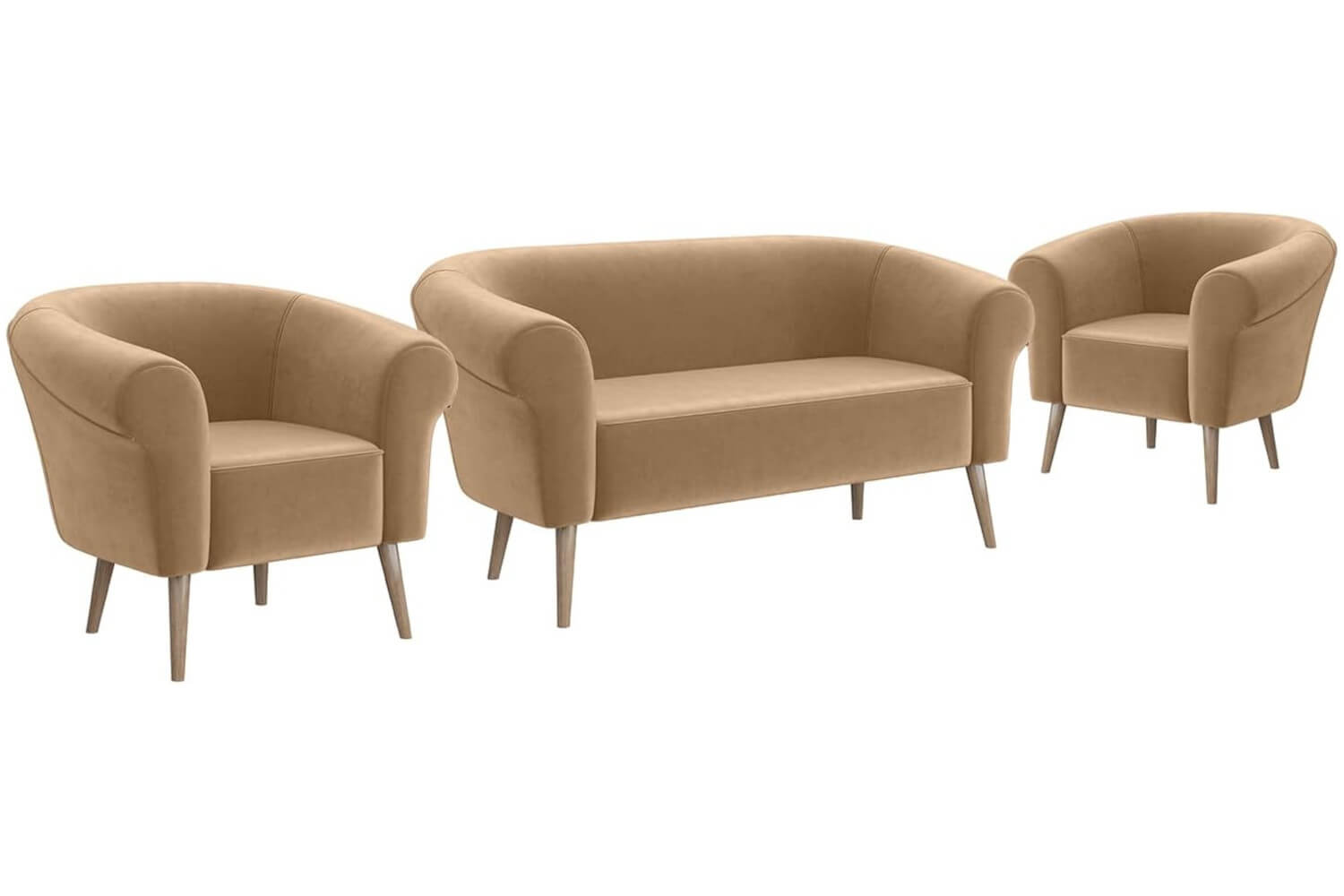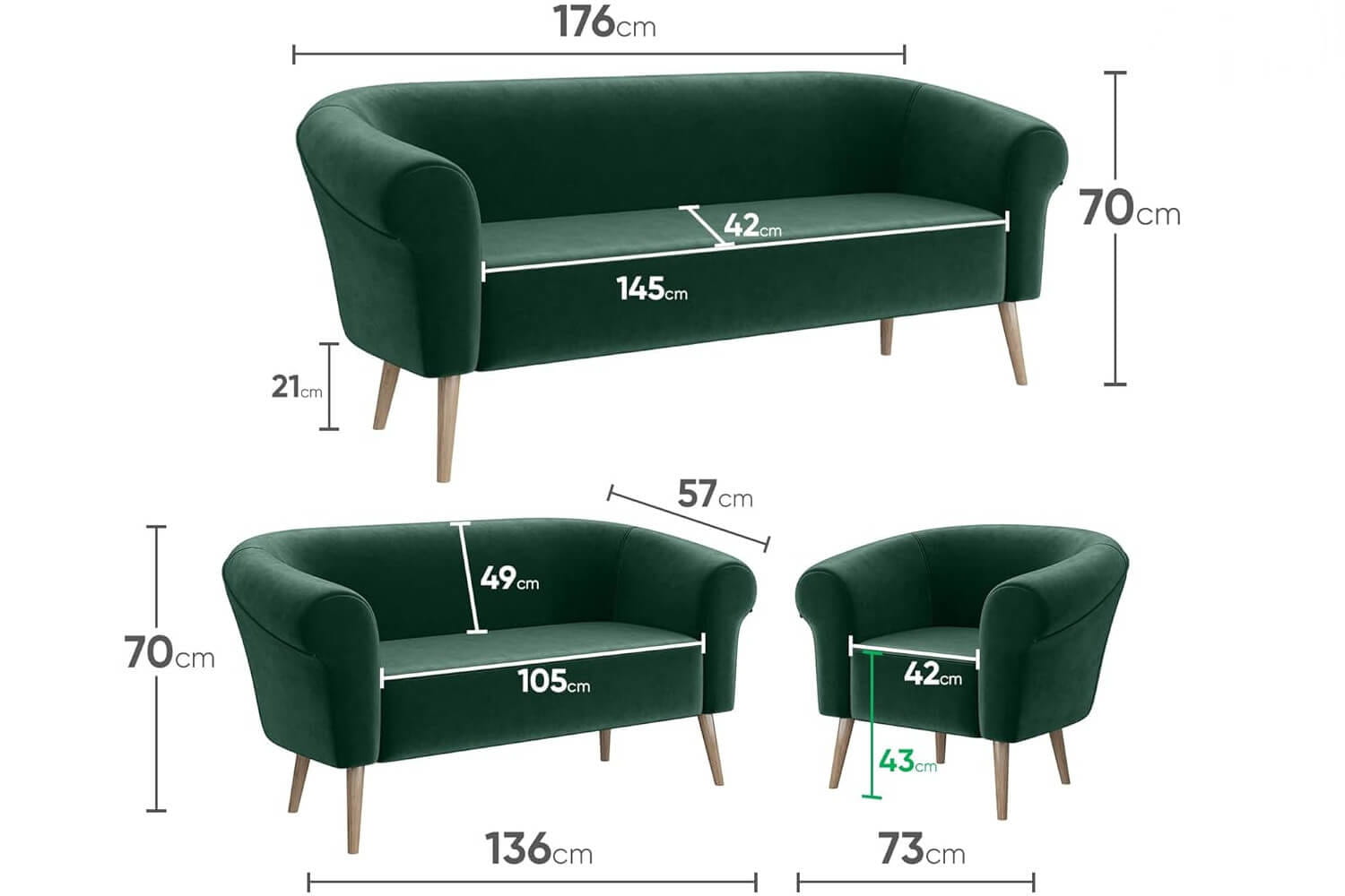 Wprowadź odrobinę luksusu do swojego salonu dzięki naszemu eleganckiemu zestawowi mebli tapicerowanych ESPER 2+1+1. W jego skład wchodzi dwuosobowa sofa o szerokości 136 cm oraz dwa wygodne fotele. Wysokiej jakości tapicerka dostępna jest w siedmiu modnych kolorach, które można dopasować do różnych stylów wnętrz. Pianka T30 zapewnia wyjątkowy komfort siedzenia i trwałość. Drewniane nóżki wykonane są z bukowego drewna i dostępne są w kilku kolorach. Pozwoli to na lepsze dopasowanie mebli do aranżacji wnętrza.